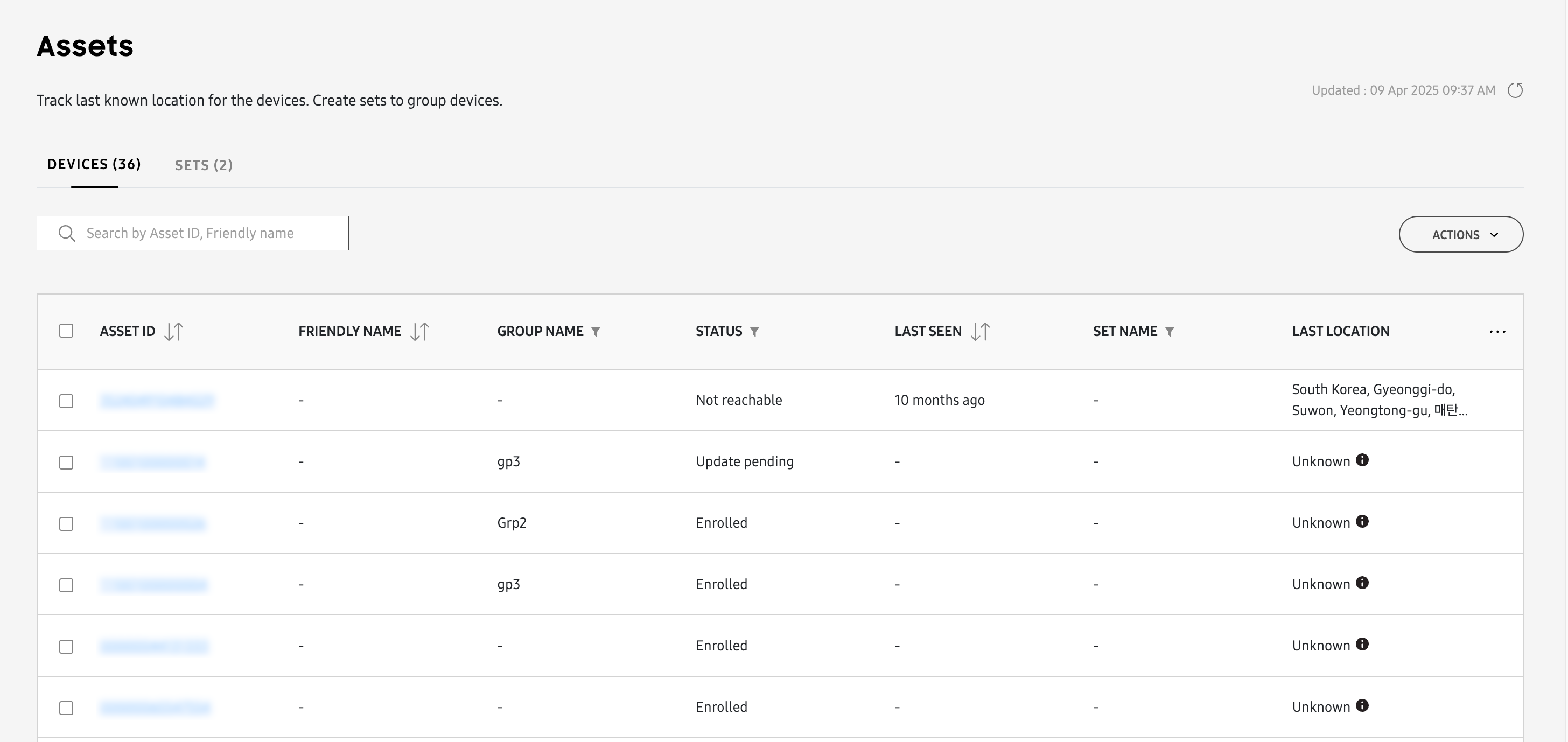 The Assets page lets you quickly see the location status and last known update times for all of your enrolled devices