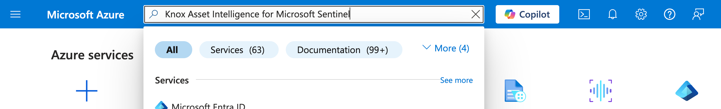 Once your Entra ID app is registered, the next step in the Sentinel configuration process is to install the Knox Asset Intelligence Data connector. To do this: