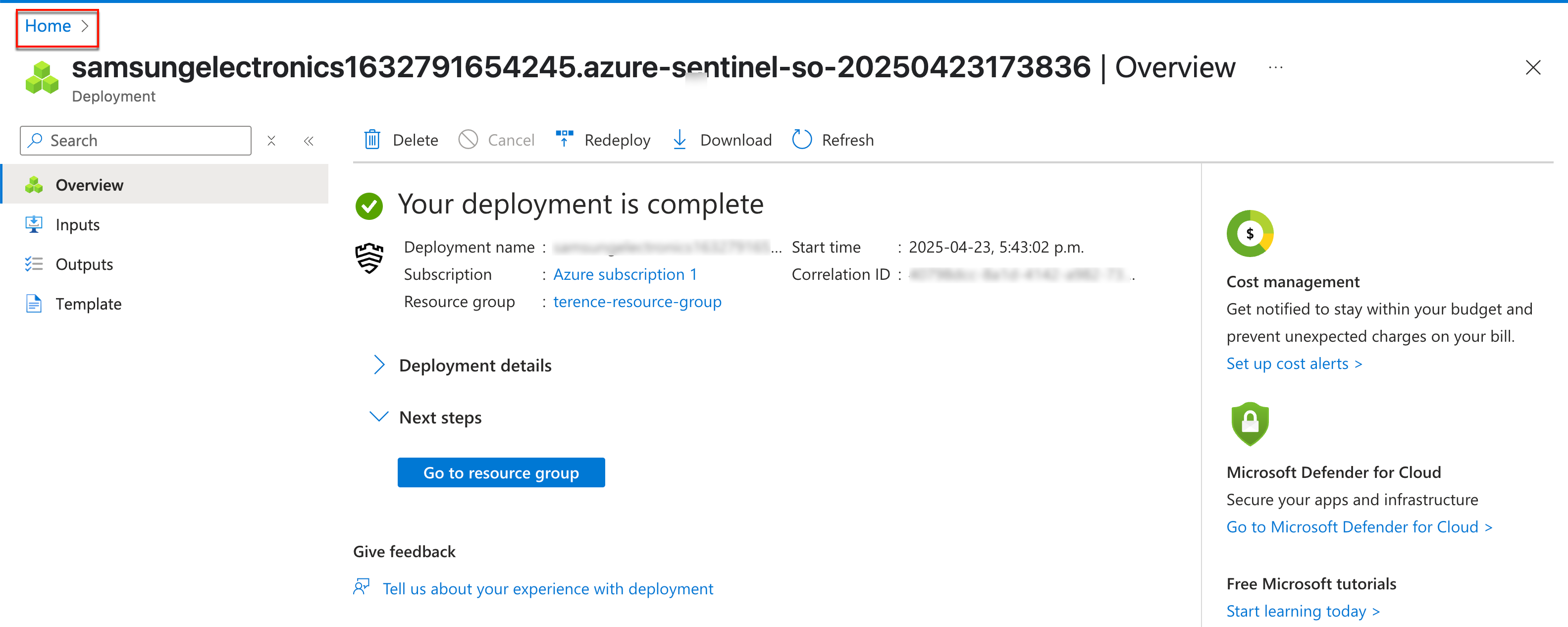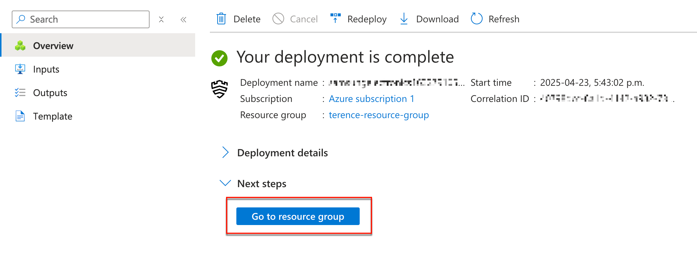 Click Go to resource group to return to your resource group’s Overview page.