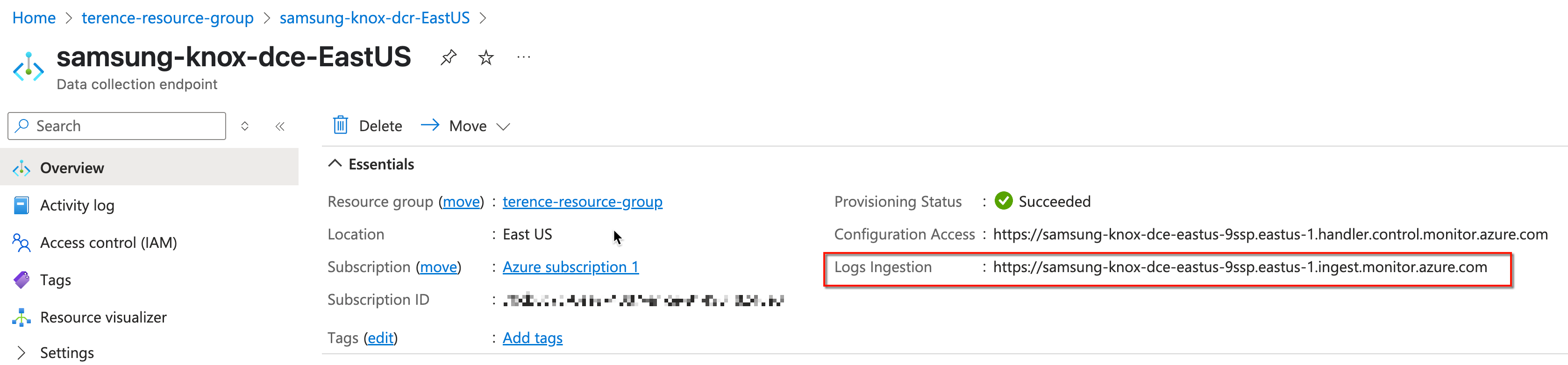 - Data collection endpoint’s Log ingestion URL