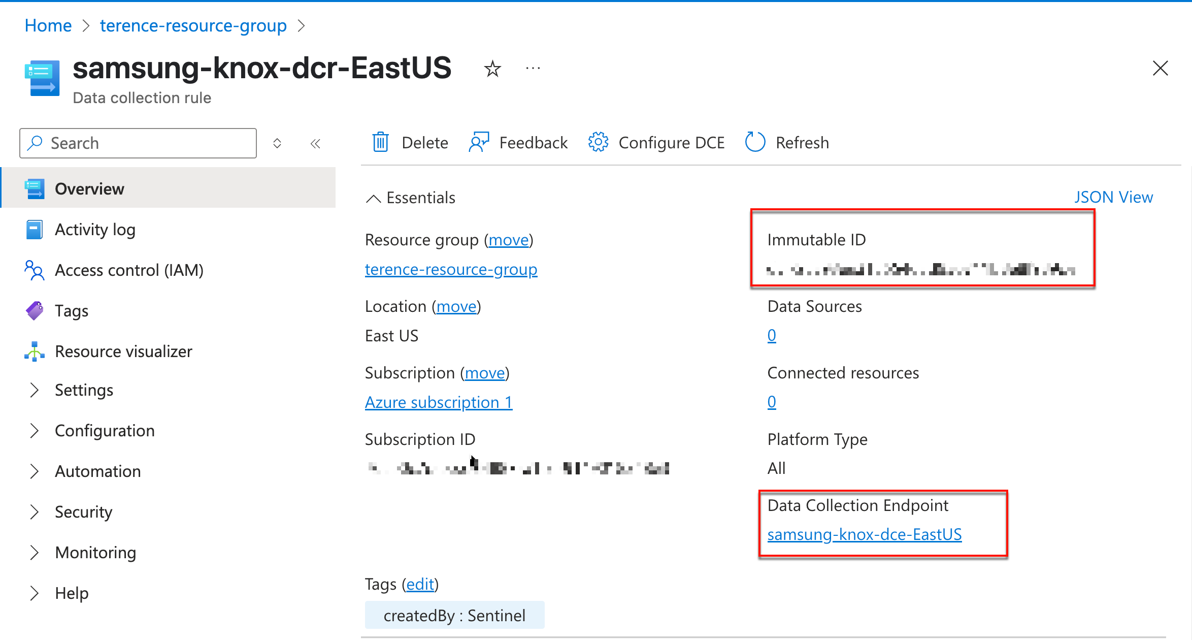 - Data collection rule’s Immutable ID