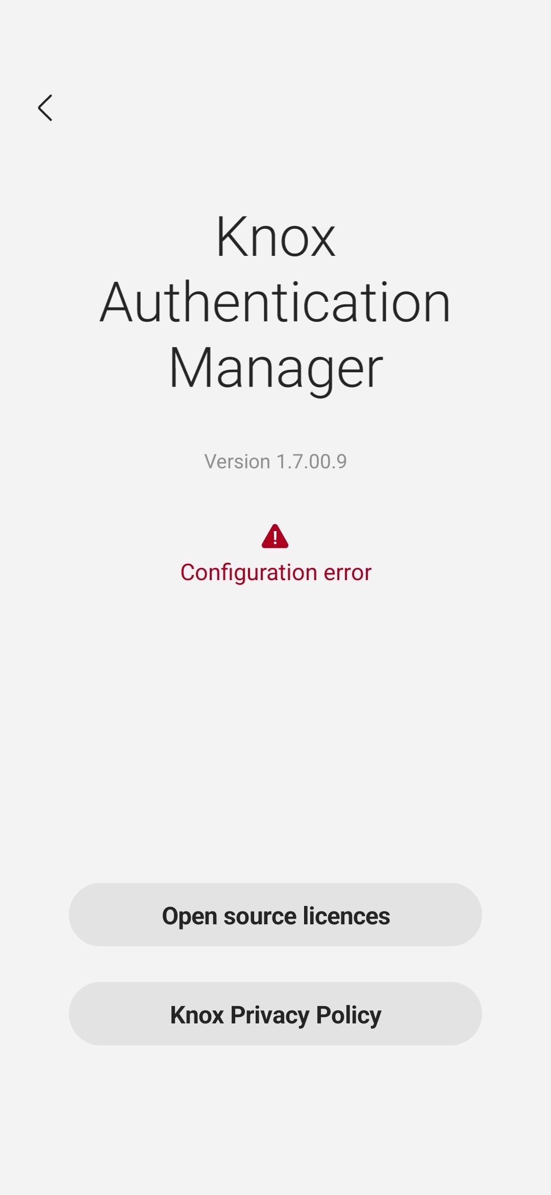To identify the policy causing this error, you can view Knox Authentication Manager policies directly from the app’s About screen. For more information, see View policies on device.