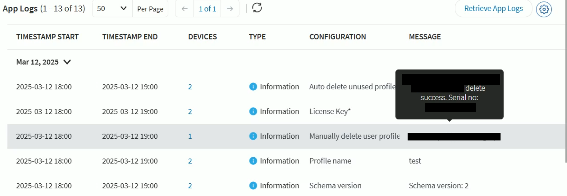 An example of a successful deletion using SOTI MobiControl is shown as follows: