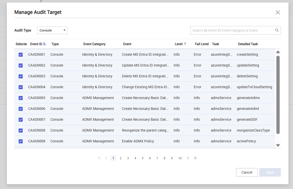 - Ensure that audit events that you want to be logged are selected.